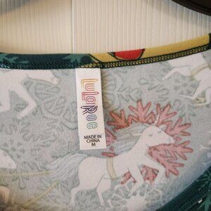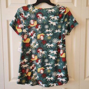 LuLaRoe Classic T-Shirt M Christmas Unicorn & Santa Design Green