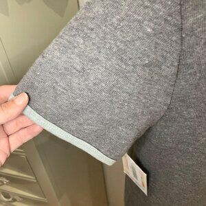 LuLaRoe t-shirt, casual gray top, women's short sleeve, cotton blend shirt, round neckline tee, classic t-shirt, S size top, contrast trim shirt, soft fabric tee, relaxed fit t-shirt, modern casual wear, everyday top, simple gray shirt