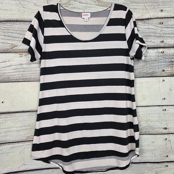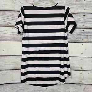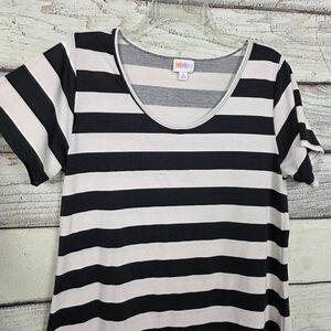 LuLaRoe Classic Tee M Black White Striped Hi Low Top