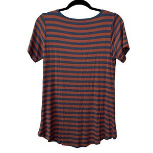 LuLaRoe Classic Tee Short Sleeve Striped Pullover SZ Small Gray & Red Casual NEW