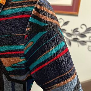 New without tags. Vibrant dress with geometric patterns. Short sleeves and round neckline. Perfect for any occasion. Length 36”, pit to pitch”. From a smoke free 🏠