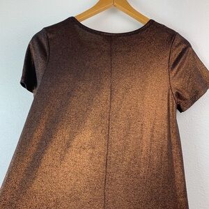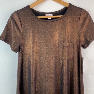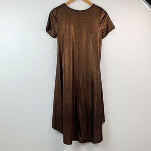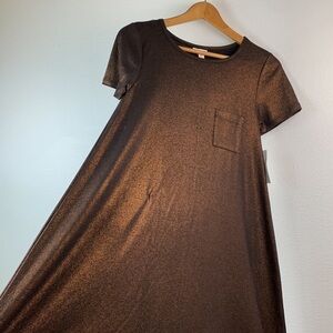 New with tags, LuLaRoe stretchy Copper brown Carly. One pocket high low A line short sleeve metallic party dress.