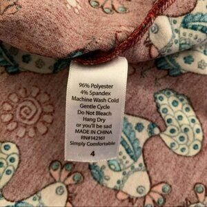 Charming LuLaRoe dress featuring a playful country chicken print. The half-sleeve design makes it perfect for warmer weather, and the size 4 fit ensures a flattering silhouette. Ideal for adding a touch of fun to any casual outfit.