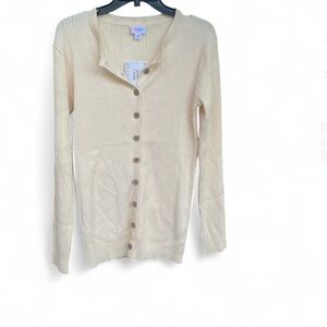 Elegant cream cardigan by LuLaRoe. Features ribbed texture and button-up front. Perfect for layering.comfortable cozy ,minimalist .
