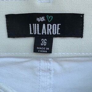 LuLaRoe Crisp White Denim Stretch Distressed Raw Hem Skinny Jeans Size 36