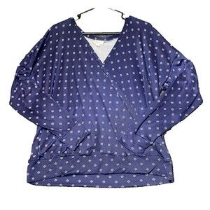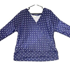 LuLaRoe Cross Front Rebecca Shirt Womens Size Large Blue Patterned Long Sleeve