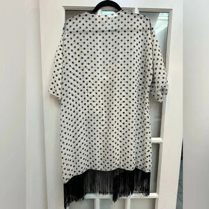 LuLaRoe | Dark Navy Polka Dot w/ Black Fringe Monroe Kimono Swim Coverup Size L