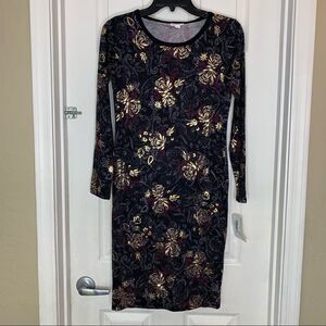 LuLaRoe Debbie Elegant Dress Collection Size XS Gold Roses