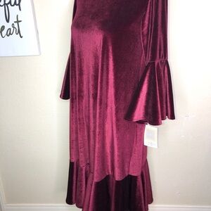 LuLaRoe Discontinued Velvet Feel,Ruffled Bottom Deep Red/Burgundy Maurin…