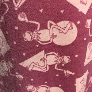 LuLaRoe Disney 3x pink top covered with Kermit the frog! 28” length in the front and 32” in the back. Very flowy with p/p measurements of 25” 95% polyester 5% spandex