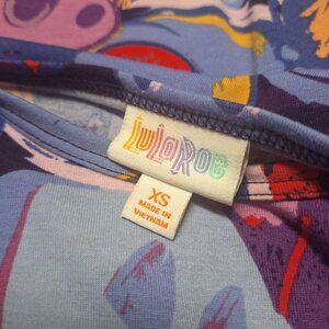 This LuLaRoe Disney Irma tunic features a whimsical Mickey Mouse design on a rich purple background. Perfect for Disney fans, this short sleeve top is both comfortable and stylish, ideal for casual outings or lounging at home.