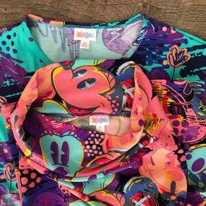 LuLaRoe Disney Minnie Mouse Irma Top and Mickey Mouse Cassie skirt.