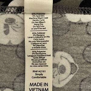 Add a touch of Disney magic to your everyday look with this adorable LuLaRoe scoop neck tee featuring an allover black and white Mickey Mouse print. Made from a soft, stretchy blend of 95% polyester and 5% spandex, this lightweight t-shirt is part of LuLaRoe’s “Simply Comfortable” line and offers both style and all-day ease. The short sleeves, relaxed fit, and curved hemline make it perfect for pairing with jeans, leggings, or shorts.
