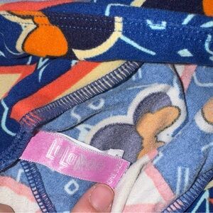 Super soft and comfy.Excellent preowned condition, minimal signs of wear. Colorful leggings with a bold geometric pattern. Features blue, orange, and yellow hues. Perfect for chilly park days or the Disney fanatic!