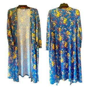 LuLaRoe Blue Floral Midi Cardigan with a pop of Yellow!!!