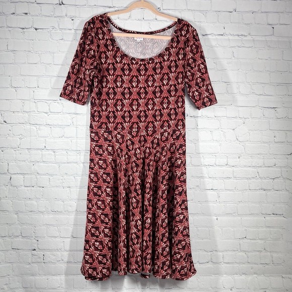 LuLaRoe Dress Dress XL Fit Flare Artsy Munroe Pink Red Skater Stretch