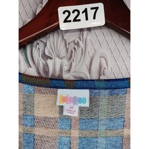 LuLaRoe Dress Women's SZ M Fit & Flare Blue/Bronze Plaid Half Sleeves Pockets EC