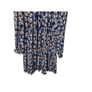 LuLaRoe Dress Women's Size 2XL Blue Floral Long Sleeve Stretchy Neckline