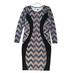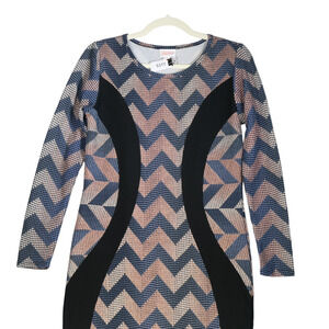 LuLaRoe Dress Womens Small Blue Pink Copper Chevron Stretch Flattering Contrast