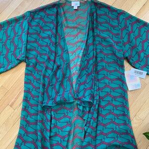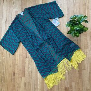 LulaRoe Monroe Kimono Green Ducks Print Yellow Fringe
