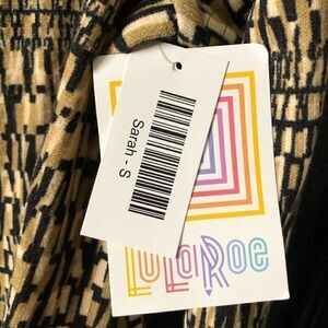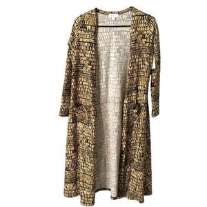 LuLaRoe Duster Womens S Sarah Sweater Open Cardigan Tan Black Pockets NWT