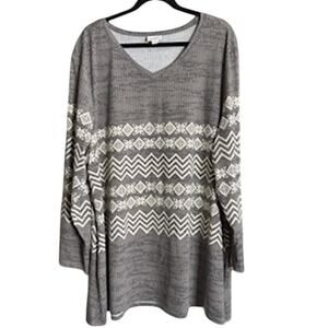 LuLaRoe Elizabeth 3XL Grey/White Snowflake Print Long Sleeve Top