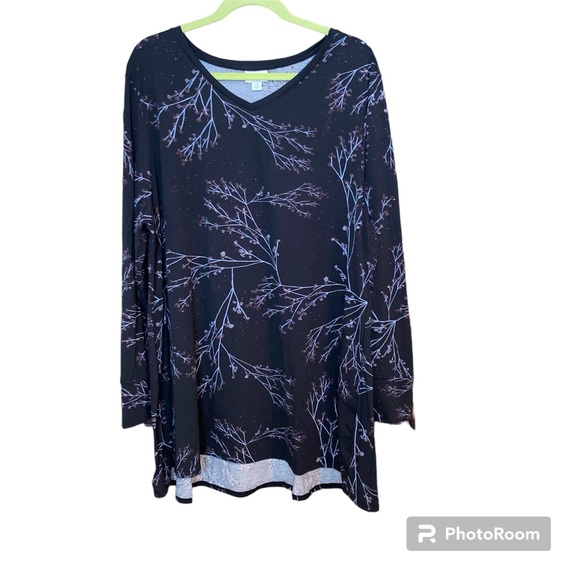 LuLaRoe Elizabeth tunic top - 2XL (22-24) - lightweight sweater material - Black with red/white branch design - In EUC - Shipping from a pet-free and non-smoking home.