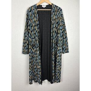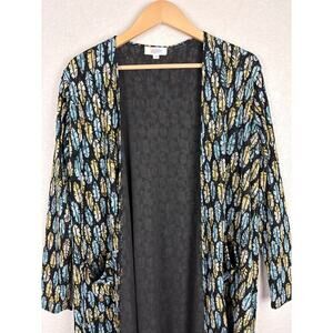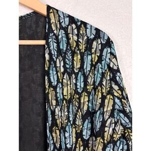 LuLaRoe Feather Print Long Line Cardigan Womens Medium Open Front Duster Boho