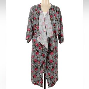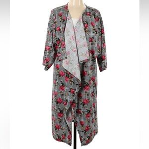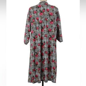 LuLaRoe Floral Black Plaid Shirley Open-Front Long Kimono Duster Cardigan Size L