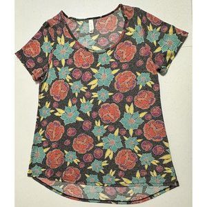 LuLaRoe Floral Print Short Sleeve T-Shirt Coral Turquoise Pattern High Low M