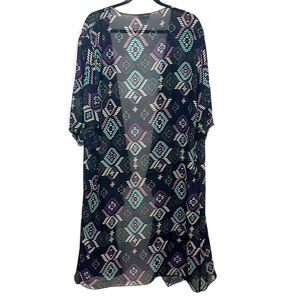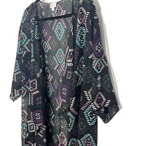 LuLaRoe Geometric Pattern Short Sleeve Waterfall Sheer Kimono Black Large
