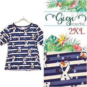 LuLaRoe Gigi T 2XL Disney Frozen Olaf Blue White Striped Winter Snowflake Tee
