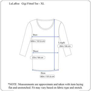 Shine bright in this LuLaRoe Gigi from the Elegant Collection, featuring a black base w/ raised metallic studded accents that shimmer with every move. Perfect for holidays, parties, or adding a touch of glam to your everyday look.