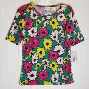 LuLaRoe Gigi Teal Floral Daisy Shirt Medium NWT