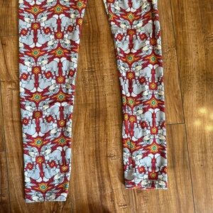 LuLaRoe Girls Leggings Bunny Rabbit Red Yellow Pattern Size Tween