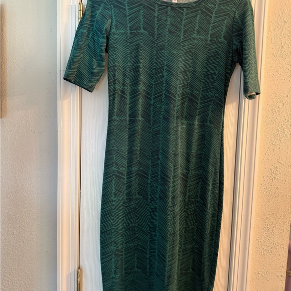LuLaRoe Green/NavyBlue Ribbed Sheath Midi Julia Dress