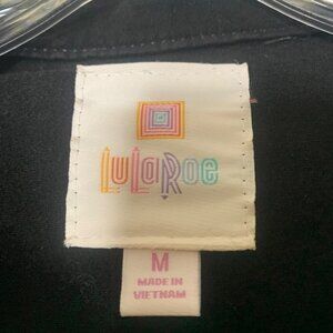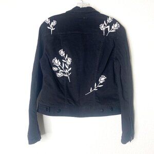 LuLaRoe Harvey Black Denim Crop Jacket with White Embroidered Roses Women’s Sz M