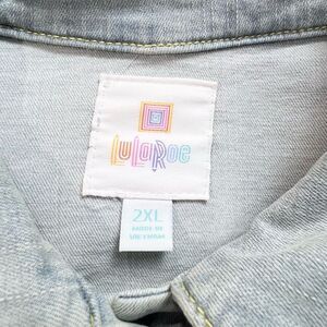 LuLaRoe Harvey Embroidered Yellow Rose Light Wash Stretch Denim Jacket 2XL