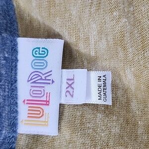 LuLaRoe Heathered Blue and Yellow Randy Raglan Tee NWT from a smoke-free home. 30" Long.