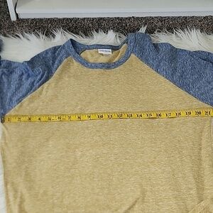 LuLaRoe Heathered Blue and Yellow Randy Raglan Tee NWT