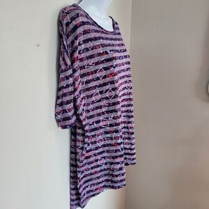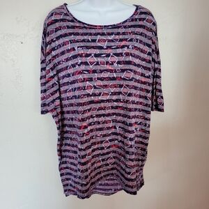 LuLaRoe Irma Blouse Purple Stripes Geometric Women's Medium Oversized Fit