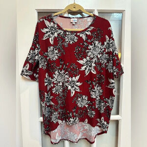 LuLaRoe Irma Red Black Floral Oversized High Low Tunic Top Size Small S - Med