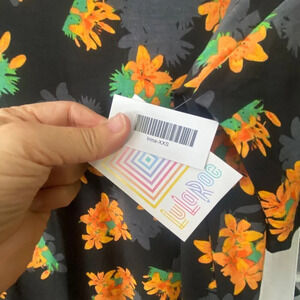 NWT Lularoe Irma Tunic Black With Orange & Green Floral Designs Size XXS