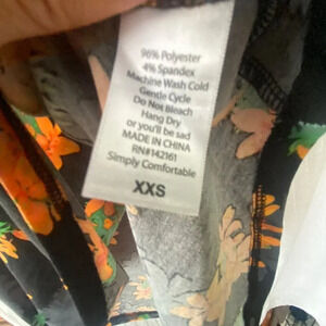 LuLaRoe Irma XXS Floral Print Tunic Top Black Orange Green Polyester Spandex
