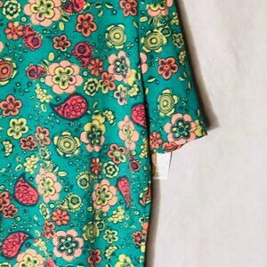 LuLaRoe Irma tunic short sleeve paisley pattern green & pink size xs READ new