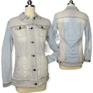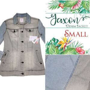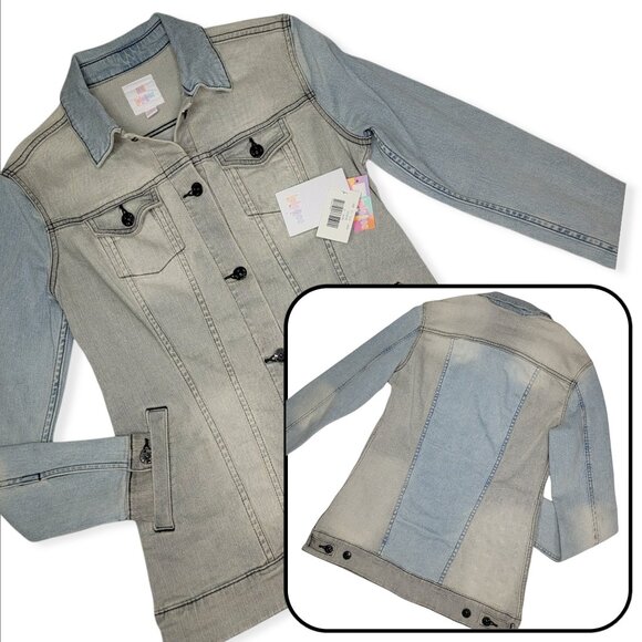 LuLaRoe Jaxon Denim Jacket Small Two-Tone Grey Blue Wash Stretch Jean Coat