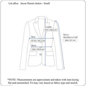 The LuLaRoe Jaxon Jacket redefines the classic denim layer with a sleek, tailored fit and two-tone grey-blue wash that feels fresh yet timeless. Perfect for fall layering, this piece moves easily from weekend errands to capsule wardrobe chic.