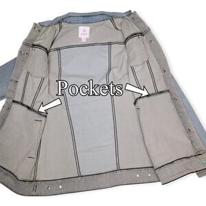 🤍 Cut: Hip Length, Sleek Tailored Fit, Long Sleeve, Button Front, Chest, Side & Inside Pockets, Shaped Seaming, Adjustable Hem Tabs