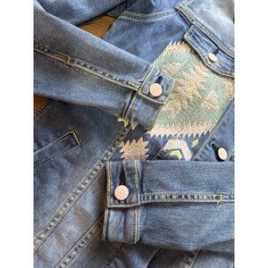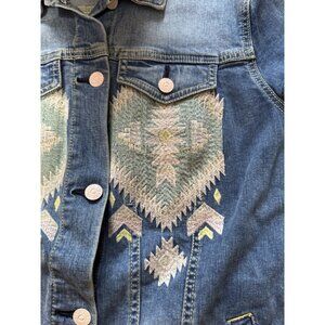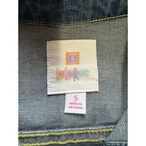 LuLaRoe Jean Jacket Size Small Southwest Aztec Boho Embroidered Blue Denim Hippi