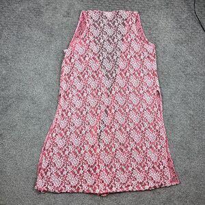 LuLaRoe Joy Duster Vest Womens Large Pink Lace Sheer Kimono Romantic Boho
